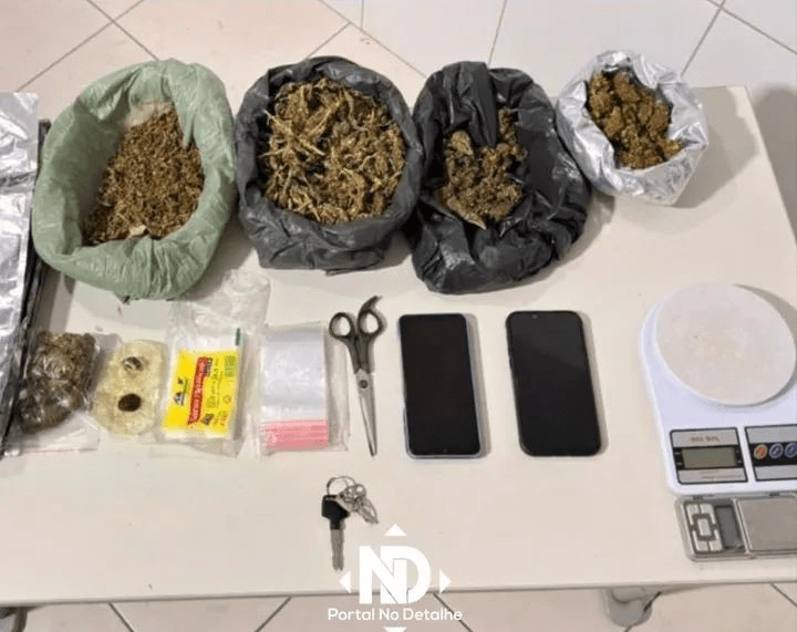 Ao todo, foram apreendidos 686 gramas de maconha, 8 gramas de haxixe, duas balanças de precisão, embalagens para acondicionamento de drogas, um aparelho celular, uma motocicleta e uma folha com anotações ligadas à comercialização dos entorpecentes.